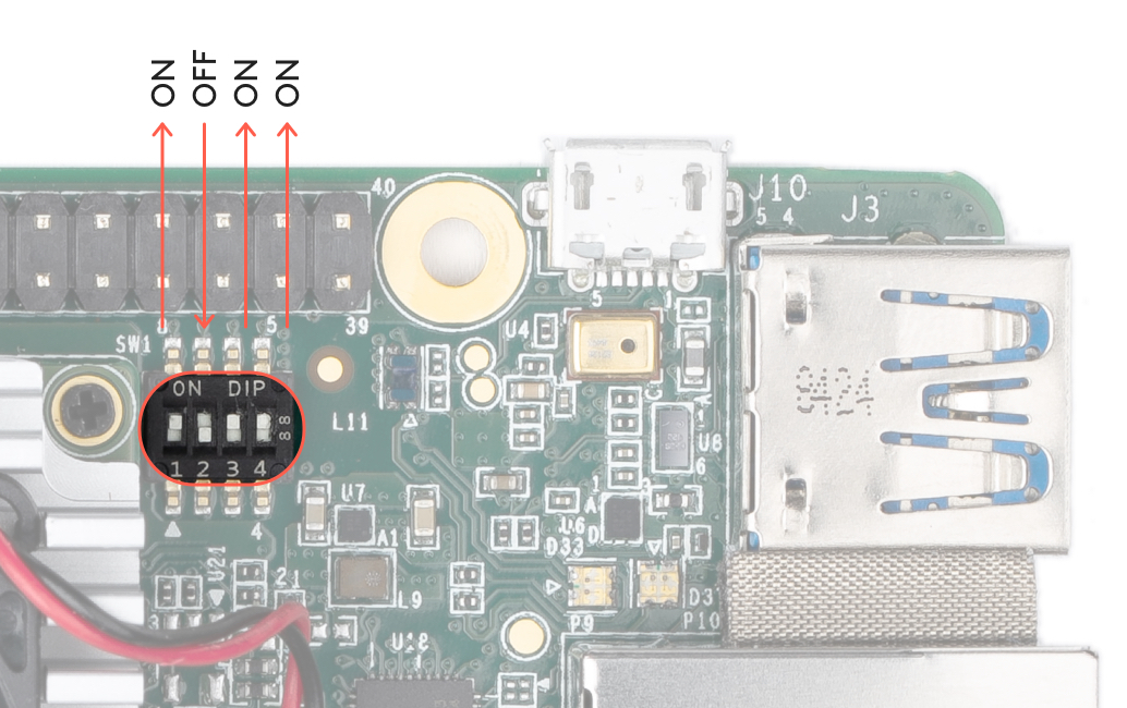 Boot mode Switch 1 Switch 2 Switch 3 Switch 4 eMMC ON OFF OFF OFF Figure 1. Boot switches set to eMMC mode -