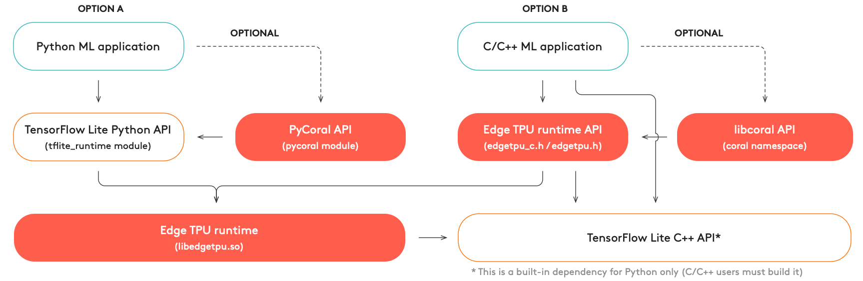 If you're developing for a platform with a general-purpose operating system (Linux, Windows, or macOS; including a Coral Dev Board, Dev Board Mini, or Raspberry Pi), you can run an inference on the Edge TPU using either Python or C/C++ with TensorFlow Lite.