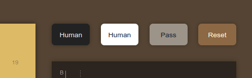 By default, the game is set up for human vs. human gameplay: Notice at the top-right corner, there are two buttons that both say "Human" (see figure 2). These indicate which player (black and white) is controlled by a human.
